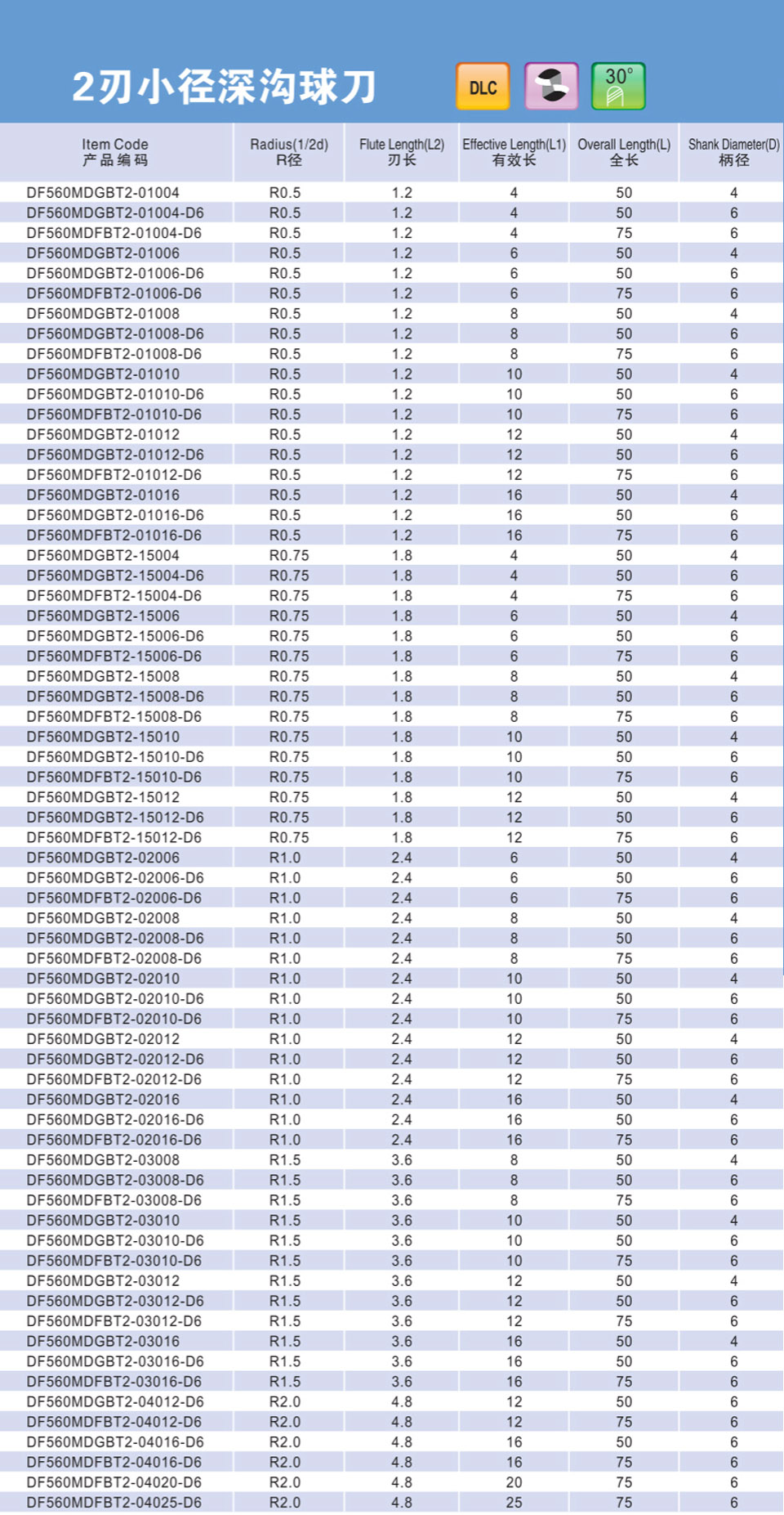2刃微小徑深溝圓鼻刀
